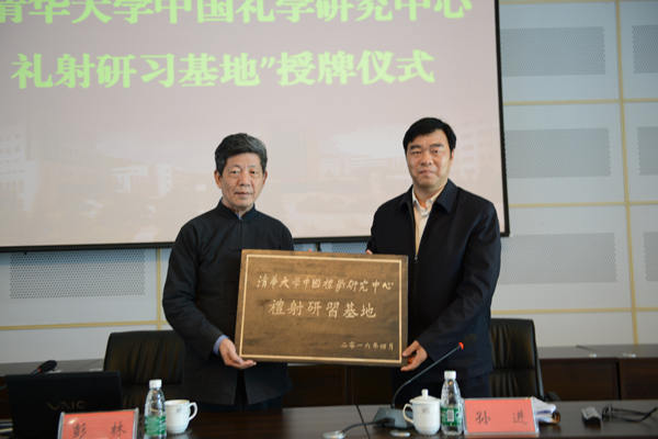 会上,彭林教授代表清华大学中国礼学研究中心授予我校“清华大学中国礼学研究中心礼射研习”基地。(大学生就业与素质教育中心 田广)