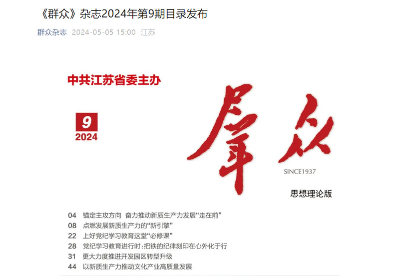 2024年第9期的《群众》杂志以《创新“大思政课”教育 强化立德树人担当》为题,刊登校党委书记朱东风的署名文章。