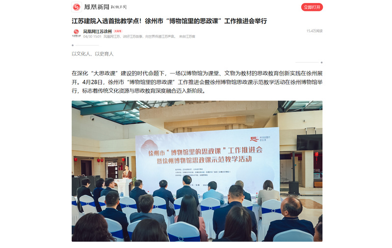【凤凰网】江苏建院入选首批教学点!徐州市“博物馆里的思政课”工作推进会举行