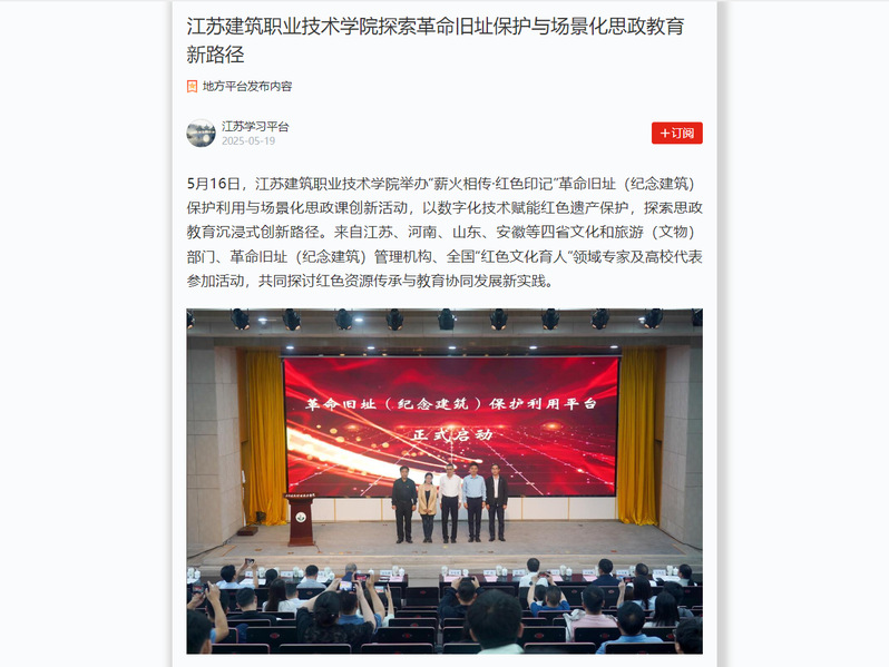 5月16日,江苏新宝gg技术学院举办“薪火相传·红色印记”革命旧址(纪念建筑)保护利用与场景化思政课创新活动,以数字化技术赋能红色遗产保护,探索思政教育沉浸式创新路径。来自江苏、河南、山东、安徽等四省文化和旅游(文物)部门、革命旧址(纪念建筑)管理机构、全国“红色文化育人”领域专家及高校代表参加活动,共同探讨红色资源传承与教育协同发展新实践。